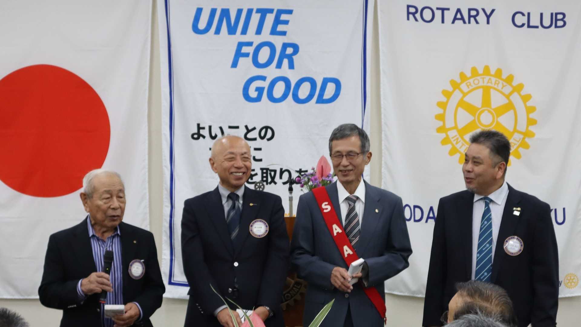 | 12:30~ | 開会点鐘:須藤会長 ロータリーソング「手に手つないで」 スピーカー及びビジター紹介 慶事祝福 会長挨拶 幹事・委員会報告 出席報告・ニコニコ箱報告 |